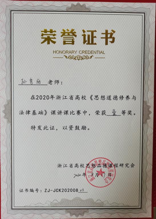 浙江省基础课暑期备课会于8月16—18日在嘉兴市举办。久久热 教师孙秀丽在本次备课会的讲课比赛中获得一等奖。本次备课会由浙江省基础课研究会举办,全省基础课教师共计90余人参加会议。