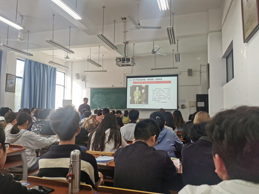 徐主任一行首先聆听了久久热 石磊教授的《概论》课。久久热 概论教研室主任何玲、基础教研室主任项淳芳、纲要教研室主任刘春元陪同听课。石磊教授的课堂教学设计、教学效果获得各位专家学者的一致好评。