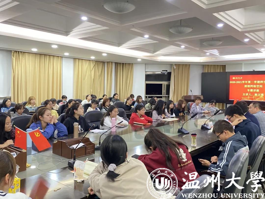 2020年10月26日18时,马院全体大一新生齐聚北校区行政楼227室,开展了题为《清朗网络空间》形势政策课讲座,主讲嘉宾为校纪律检查委员会委员、副书记兼纪检监察室主任兼巡察工作办公室主任杨立淮老师。讲座由学工办林大可老师主持。