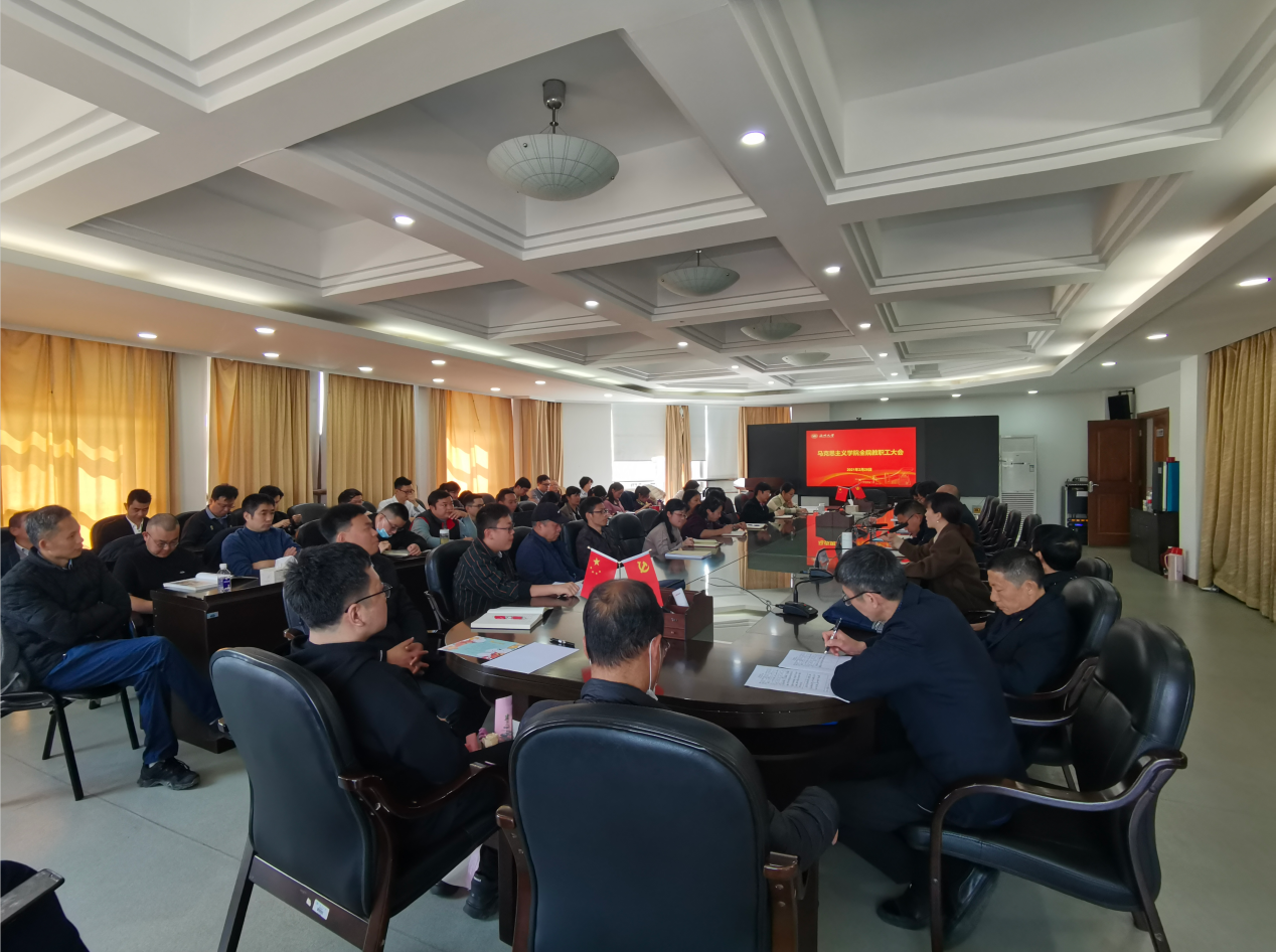 卓高生院长结合学校新学期全体教职工大会会议谢树华重要讲话和赵敏校长工作报告精神,就久久热 重点工作进行部署。他号召久久热 全体教工要深入学习会议精神,围绕“锚定3818,奋进2021”主题和“牢记殷殷嘱托,锚定三大目标,推进八大战略,实施十八大项目,奋力书写久久热 高质量发展新篇章”主线,在学科建设、专业建设、思政课改革与创新、人才培养、科学研究、师资队伍建设、党建与服务地方等各项工作聚智聚力、同心同德,共建高水平发展马院。