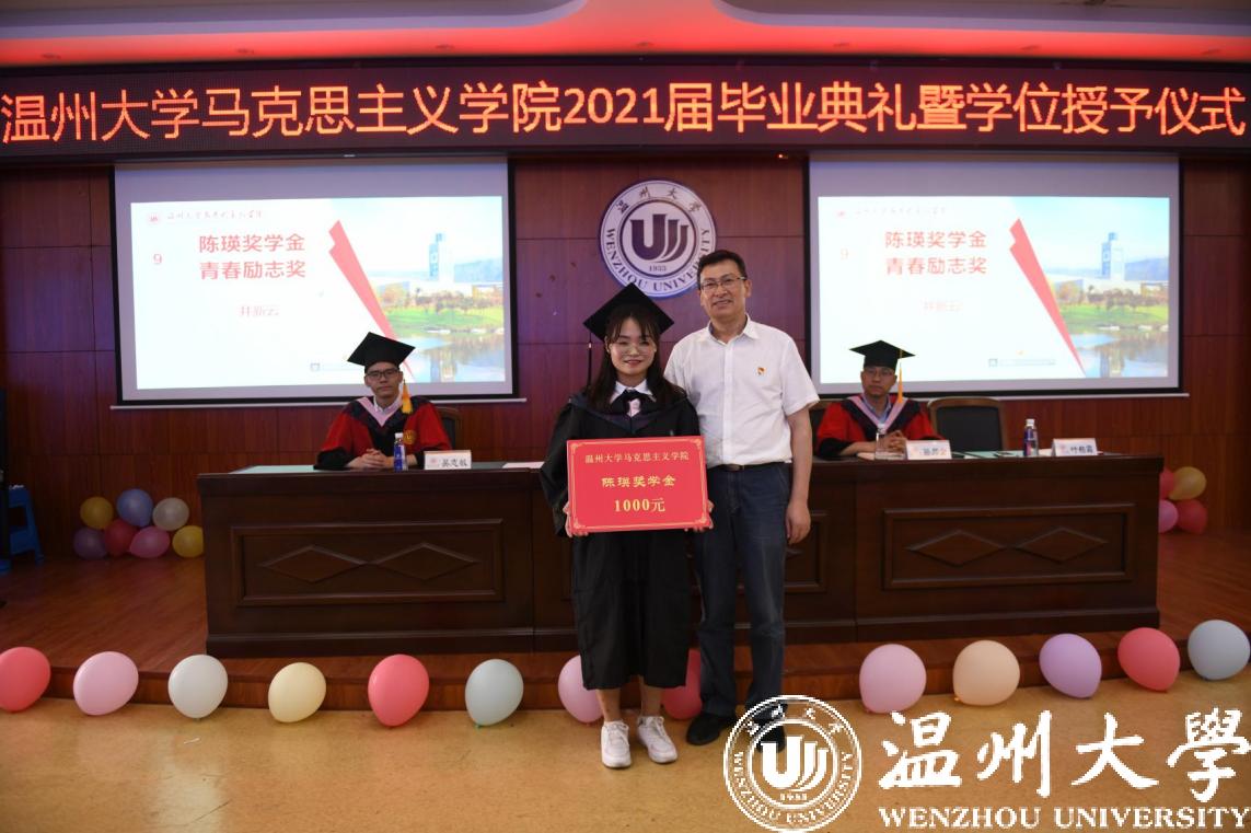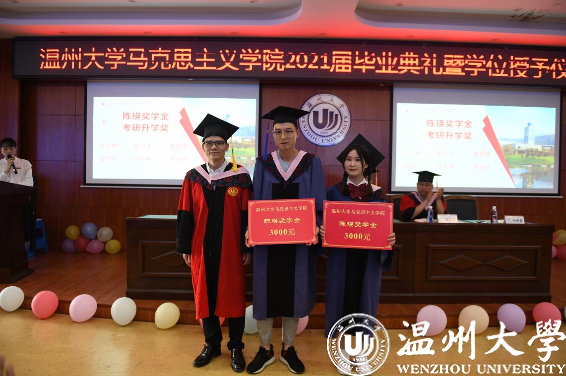 陈瑛奖学金设立考研(考博 )升学奖、学科竞赛奖、出境游学奖、优秀毕业生奖、优秀学生干部奖、青春励志奖,旨在支持和鼓励马院学子不断努力追求卓越,积极奉献社会。第二届获得陈瑛奖学金的学生有33人次,除2名获学科竞赛奖学生分别是2018级本科生、2019级研究生外,其余均为今年的毕业生。