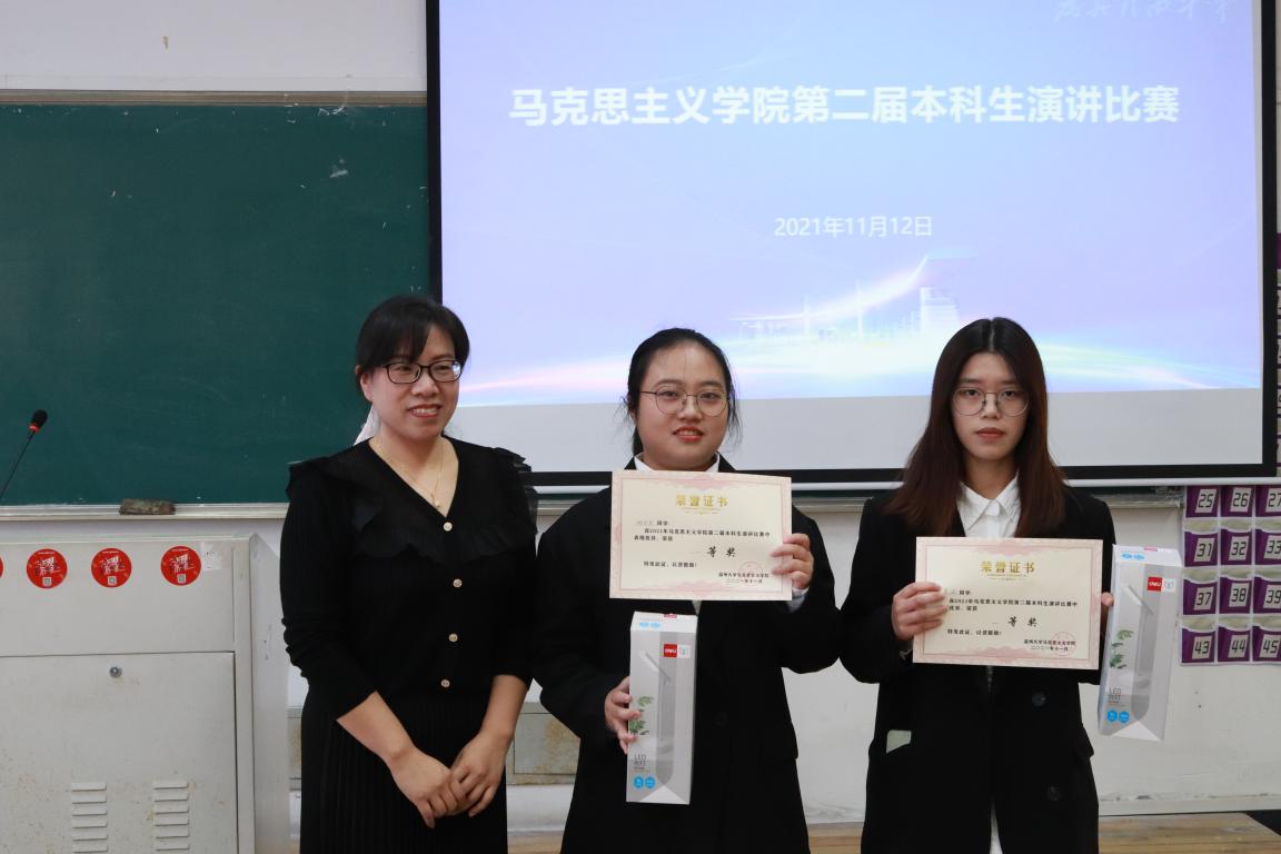 经过紧张的比分统计,林欣奕和袁函同学获得一等奖,王缘等4位同学获得二等奖,胡雨欣等6位同学获得三等奖。5位评委老师分别为获奖同学颁发奖状和纪念品,并合影留念。此次比赛在掌声中圆满落下帷幕。