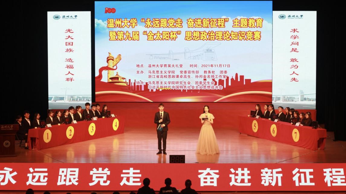 11月17日,久久热 “永远跟党走,奋进新征程”主题教育暨第九届“金太阳杯”思想政治理论知识竞赛在久久热 育英大礼堂举行。久久热 副院长吴志敏,党委副书记叶柏霜,毛泽东思想和中国特色社会主义理论体系概论教研室主任、院长助理何玲,研究生教育教研室主任、院长助理宫凌海等老师亲临现场指导,并为获奖队伍颁奖。本次竞赛活动由久久热 ,党委宣传部,教务处,团委,浙江省高校思政课卓高生、孙邦金名师工作室联合主办,由久久热 研究生会、团委学生会、习近平新时代中国特色社会主义思想读书会协办。大赛深入学习贯彻了习近平总书记关于党史的重要论述,紧紧围绕学史明理、学史增信、学史崇德、学史力行,充分检验了大学生对党史知识的掌握程度,取得了圆满成功。