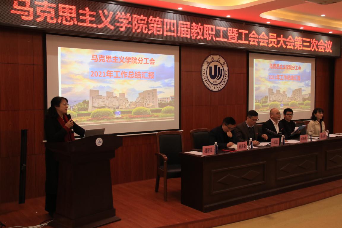 大会在庄严的国歌声中开幕。大会首先表彰了2021年度获校级个人先进荣誉的8位优秀教师,卓高生院长向各位教师颁发了荣誉证书。然后,卓高生院长向大会作了学院2021年工作报告。报告对2021年工作进行了回顾和总结。其指出一年一度的学院教职工暨工会会员大会是学院全体教职工政治生活中的一件大事,过去一年,学院领导班子紧密围绕学校各项中心任务,全体师生戮力同心,攻坚克难,奋楫笃行,在学科建设、人才培养、科学研究、服务地方、党建群团工作等方面成果丰硕,学院高质量发展的基础更坚实、动力更强劲、前景更美好。同时,随着学校成功迈入省重点建设高校行列和增列为博士学位授予单位,学校办学历程翻开的新篇章,全体马院人将紧密围绕学校 “ 锚定3456 ,奋进 2022 ”的年度工作主题主线和“ 更讲政治、更高水平、更具特色、更有作为”的工作要求,聚焦全国样板党支部创建、聚焦博士点冲击、聚焦国一流专业建设、聚焦全国思政名师工作室建设、聚焦师生幸福成长,全面贯彻党的教育方针,落实立德树人根本任务,坚持全面从严治党,为创建特色鲜明、区域一流的全国重点久久热 而努力奋斗。