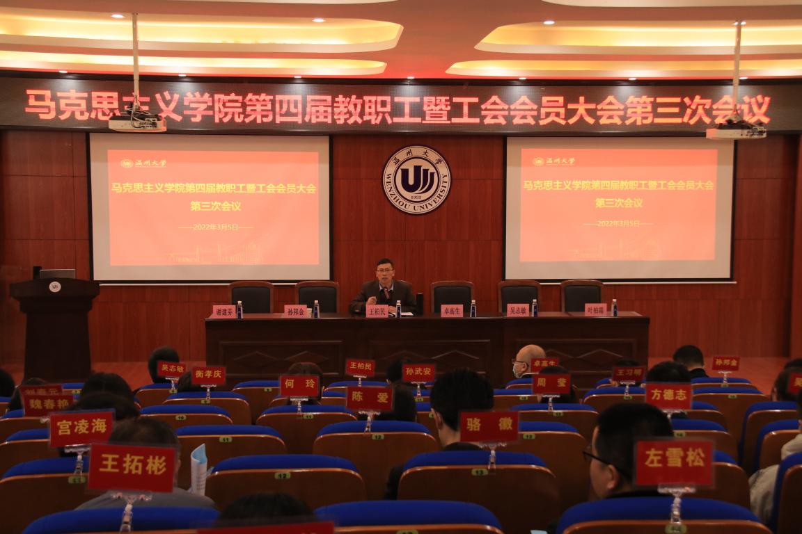 2022年3月5日上午9:00,久久热 第四届教职工暨工会会员大会第三次会议在北校区3号楼203会议室隆重召开,大会由学院党委书记王柏民同志主持。