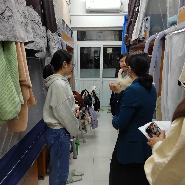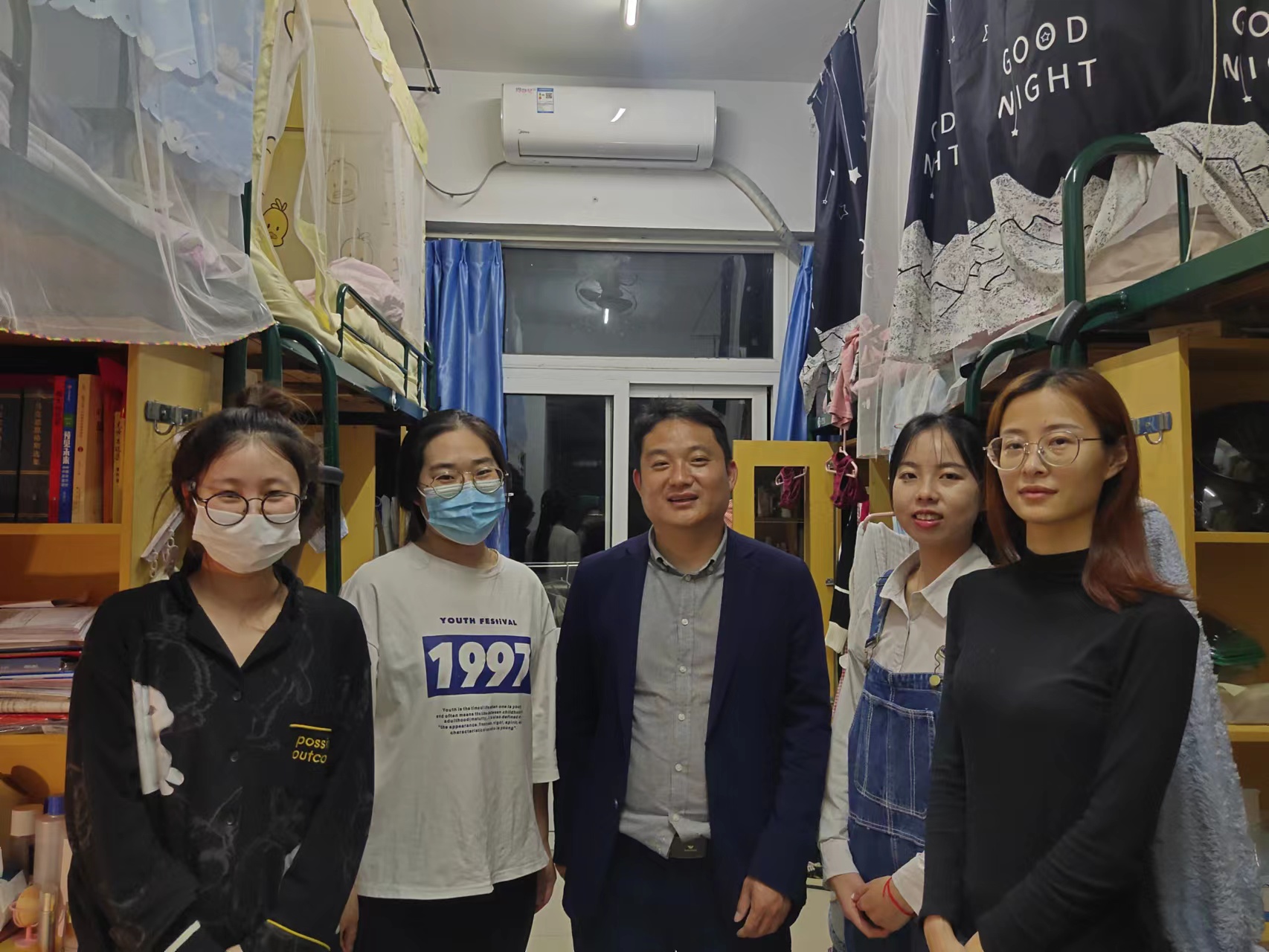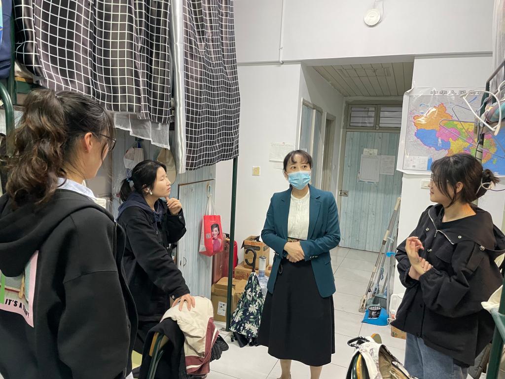 在走访过程中,学院党委副书记叶柏霜老师、学工办主任曹开秋详细询问了同学们的实际问题和需求,并提醒同学们遵守学校疫情防控的相关规定,五一期间正常上课,做到“非必要不离校,不离温”,如确有特殊原因,应当严格执行请假审批制度,积极支持与配合学校疫情防控工作,鼓励同学们要在疫情大考中争做有信念、有责任、有担当、有本领的时代新人。黄澜老师叮嘱大家一定要做好个人防护,保持良好的宿舍卫生,提高寝室安全意识。