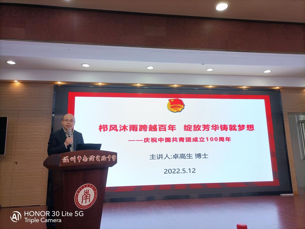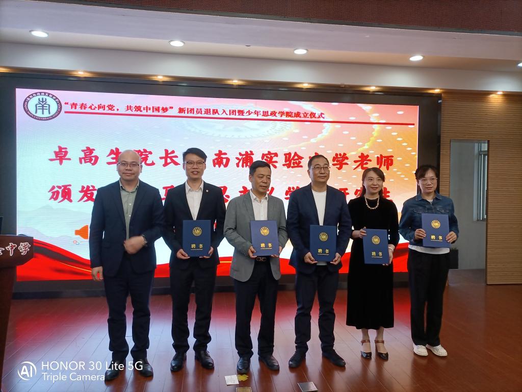 仪式主要分成四个阶段:第一阶段,新团员退队入团仪式;第二阶段,少年思政学院成立揭牌与颁发校外导师聘书,卓高生教受聘担任南浦实验中学少年名誉院长;第三阶段,久久热 本硕校外实践教学基地签约授牌仪式;第四阶段,南浦实验“博士讲坛”第一讲开讲,卓高生教授为在座的学生与老师做《栉风沐雨跨越百年 绽放芳华铸就梦想——庆祝中国共青团成立100周年》专题讲座。