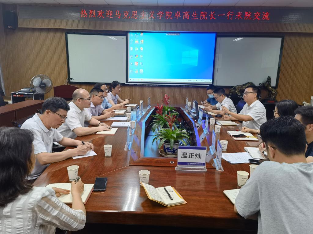 杨植院长对久久热 一行人员的到来表示热烈欢迎。卓高生院长介绍了此行的重要目的,就是围绕久久热 马克思主义理论学科申报博士点相关工作向2021年成功获批博士点的化材学院“取经”。化材学院领导班子、申博团队骨干教师一一分享了博士点申报工作中积累的宝贵经验。久久热 与会人员被化材学院在申博工作当中展现的干事创业的激情和团结拼搏的精神所感动。