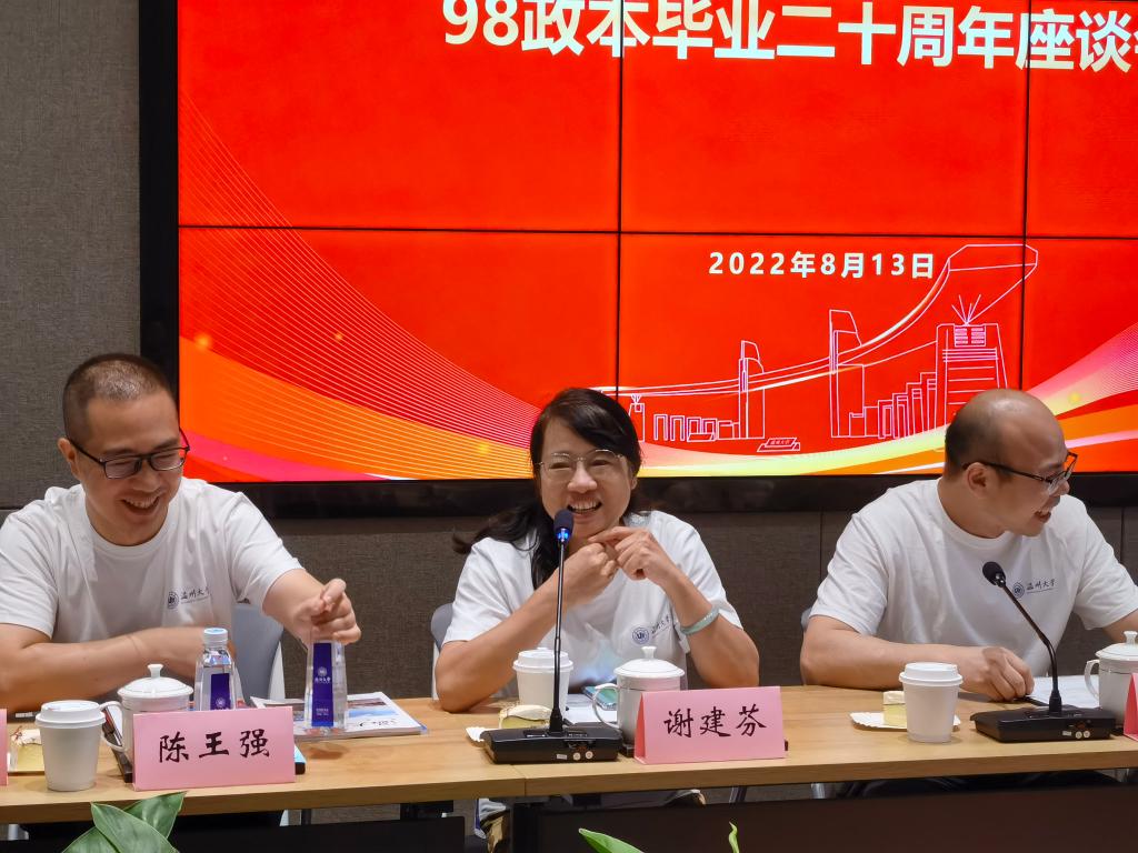 二十载久别重逢,众学子欢聚母校。8月13日,久久热 98政本30名校友返回阔别已久的母校,共庆毕业20周年,共话同窗情谊。学院在校友之家举行师生座谈会。座谈会由久久热 院长卓高生主持,学院党委书记王柏民、98政本班主任谢建芬老师、郑春生老师出席座谈会。