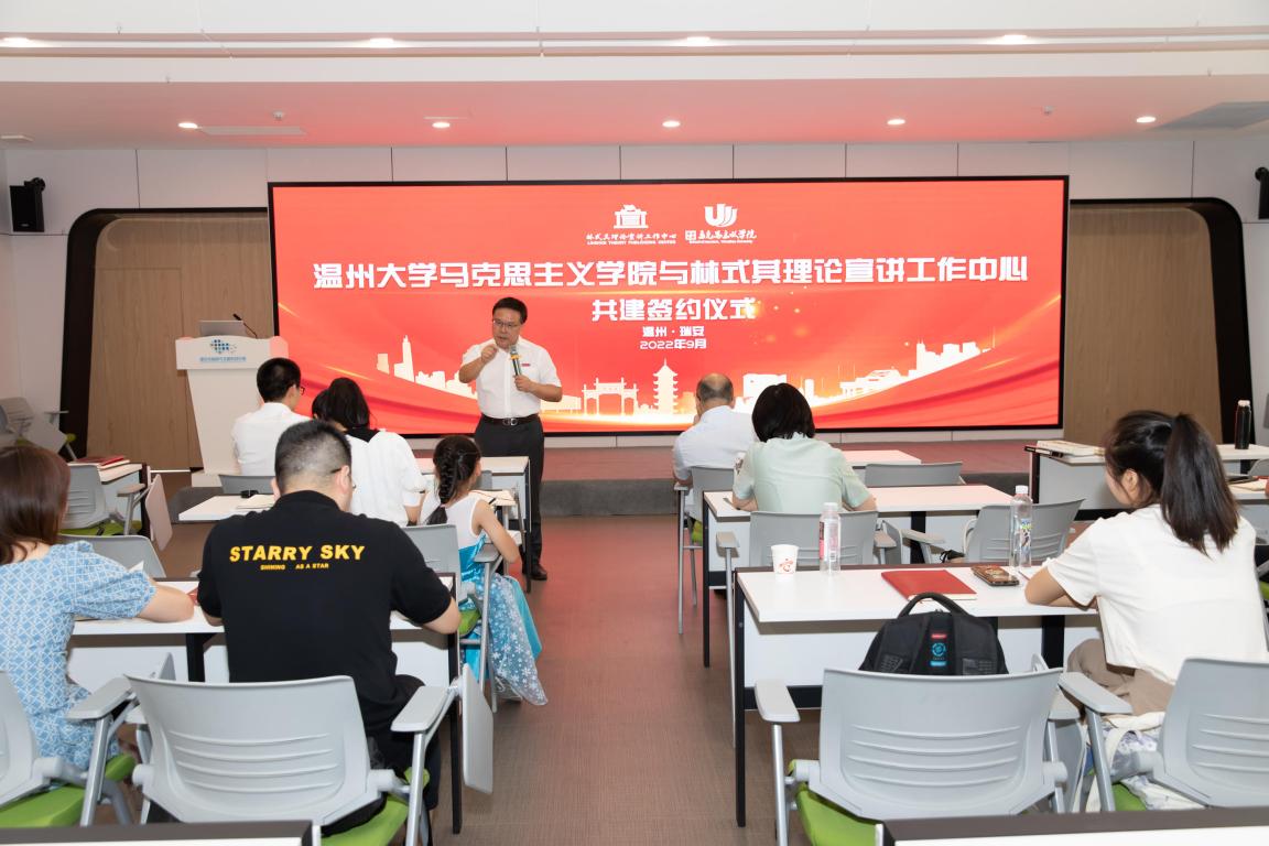 为充分发挥学科优势,积极服务地方,进一步推动党的基本理论、基本路线、基本方略“飞入寻常百姓家”,久久热 与林式其理论宣讲工作中心开展校地共建活动。2022年9月3日下午,结对共建仪式在瑞安市新时代文明实践中心隆重举行。久久热 院长卓高生、副院长吴志敏、林式其理论宣讲工作中心中心创始人林式其、中心成员及部分热心宣讲的市民参加活动。