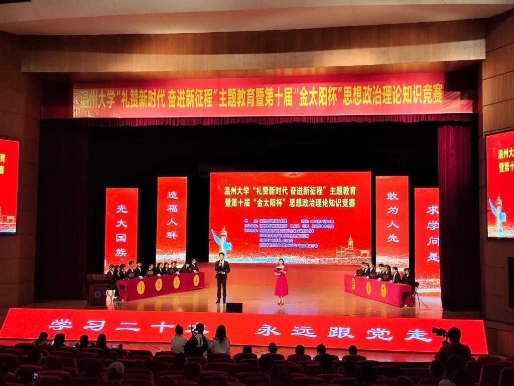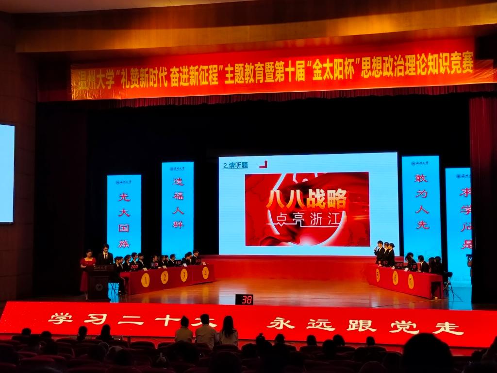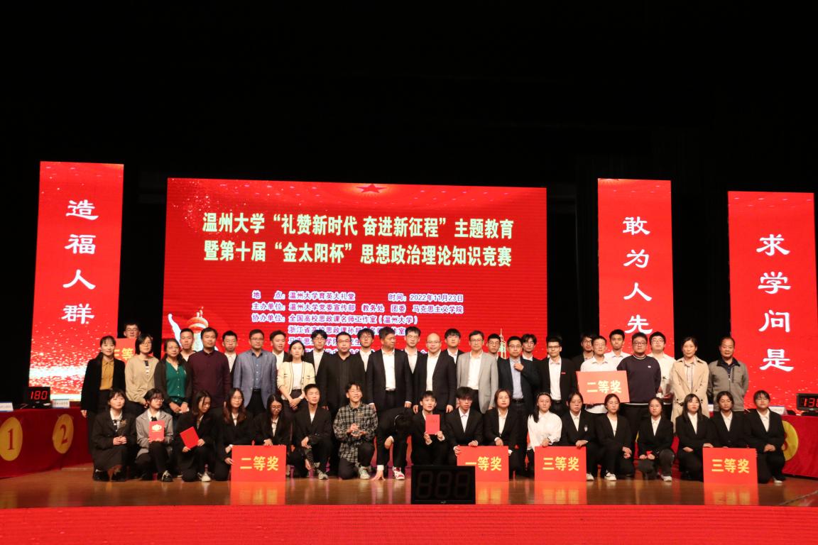 为深入学习贯彻党的二十大精神和习近平新时代中国特色社会主义思想,11月23日下午,学习二十大“礼赞新时代、奋进新征程”暨第十届“金太阳杯”思想政治理论知识竞赛在久久热 育英大礼堂隆重举行。本次竞赛活动由校党委宣传部,教务处,团委,久久热 联合主办,全国高校思政课名师工作室(久久热 )、浙江省高校思政课孙邦金名师工作室、久久热 研究生会、习近平新时代中国特色社会主义思想读书会协办。校党委副书记庄兴忠、校党委宣传部副部长张真、教务处副处长夏远志、校团委副书记吴琼琼,久久热 相关负责人及老师等出席本次活动。