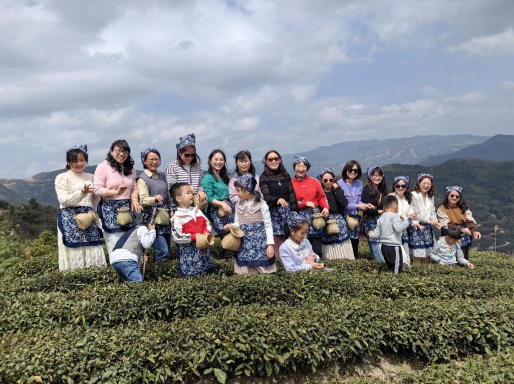 全体女教职工到达茶园之后,经过引导人员的介绍和采茶培训,老师们热情高涨地奔赴千亩茶园,开始“大显身手”。大家穿戴上采茶姑娘的服饰,穿梭于春意盎然的茶园,巧手飞舞,形成了一道美丽的风景线。在繁忙的采茶过后,大家又来到茶社围炉煮茶,共叙情谊。