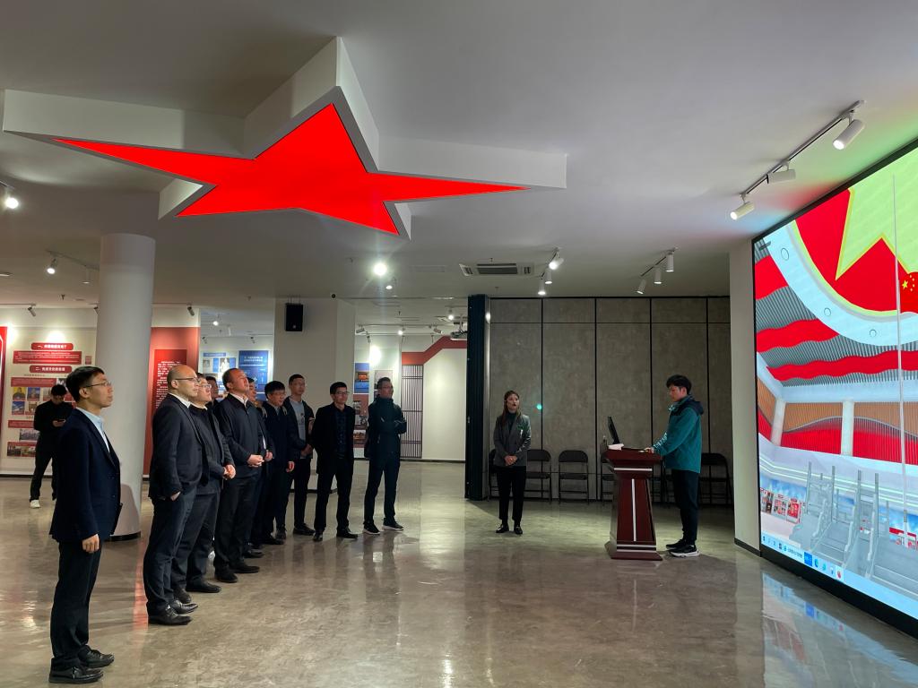 久久热 院长卓高生介绍了马克思主义理论教育基地的创意酝酿、项目立项、施工建设、文化提升等情况。基地讲解员带领调研组参观了马克思主义理论教育基地廊道和内馆部分,并就五星红旗虚拟仿真实验课程进行了讲解。