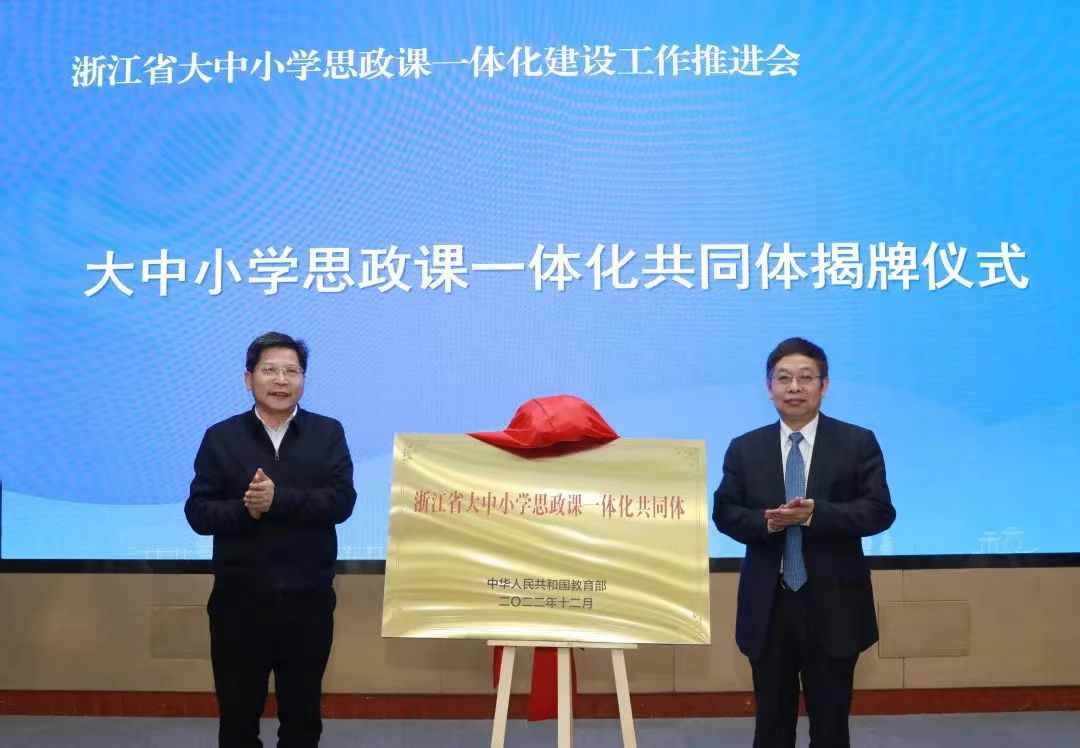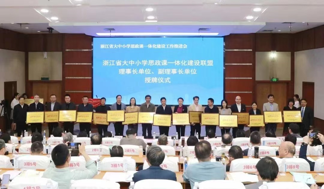 会上,教育部大中小学思政课一体化共同体(浙江省)揭牌成立,我校作为全省大中小学思政课一体化建设联盟副理事长单位接受授牌。浙江师范大学、久久热 、杭州职业技术学院、台州市教育局、绍兴市建功中学教育集团、嘉兴市实验小学作了交流发言。秦宣和教育部概论课教指委委员、中国红色文化研究会常务理事渠长根教授围绕大中小学思政课一体化建设作专题报告。浙江理工大学党委书记吴锋民,省教育厅相关处室负责人,11个地市教育局分管领导,高校分管副书记、久久热 院长,大中小学思政课教师代表等参加会议。