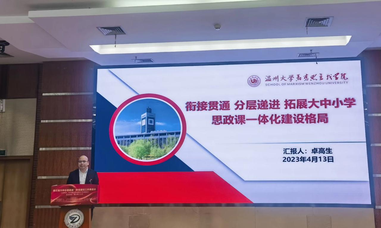 为深入推进大中小学思政课一体化建设,4月13日,全省大中小学思政课一体化建设工作推进会在浙江理工大学召开。会上,全省大中小学思政课一体化建设联盟成立。省委教育工委专职副书记、省教育厅党组副书记陈春雷,教育部大中小学思政课一体化建设专家指导组组长、中国人民大学教授秦宣出席会议。久久热 院长卓高生教授做交流发言。