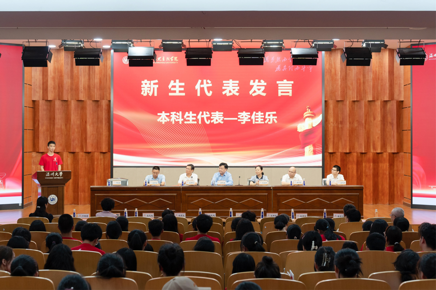思考探索不懈怠,开拓视野见新天。作为教师代表,2023年温州市优秀班主任、思政系系主任孙金波老师以“学习即生活”为主题向新生致词。