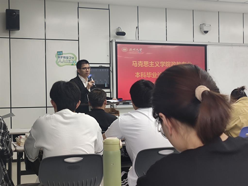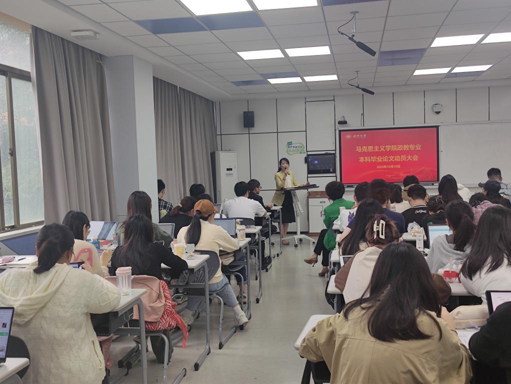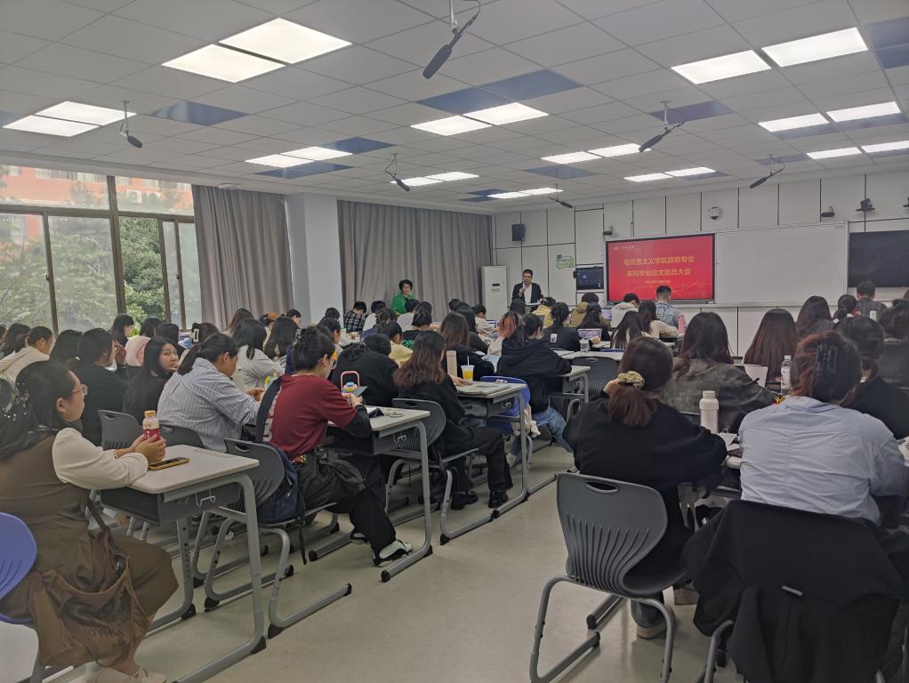 为提升本科毕业生的论文写作水平和写作素养,提高本科毕业论文的科学性,营造良好的学术氛围,2023年10月10日上午,久久热 政教专业本科毕业论文动员大会于北校瓯4-206教室召开。久久热 副院长吴志敏、党委副书记叶柏霜出席本次大会,学院20级政教全体学生参加本次大会。大会由教学科主任孙金波老师主持。