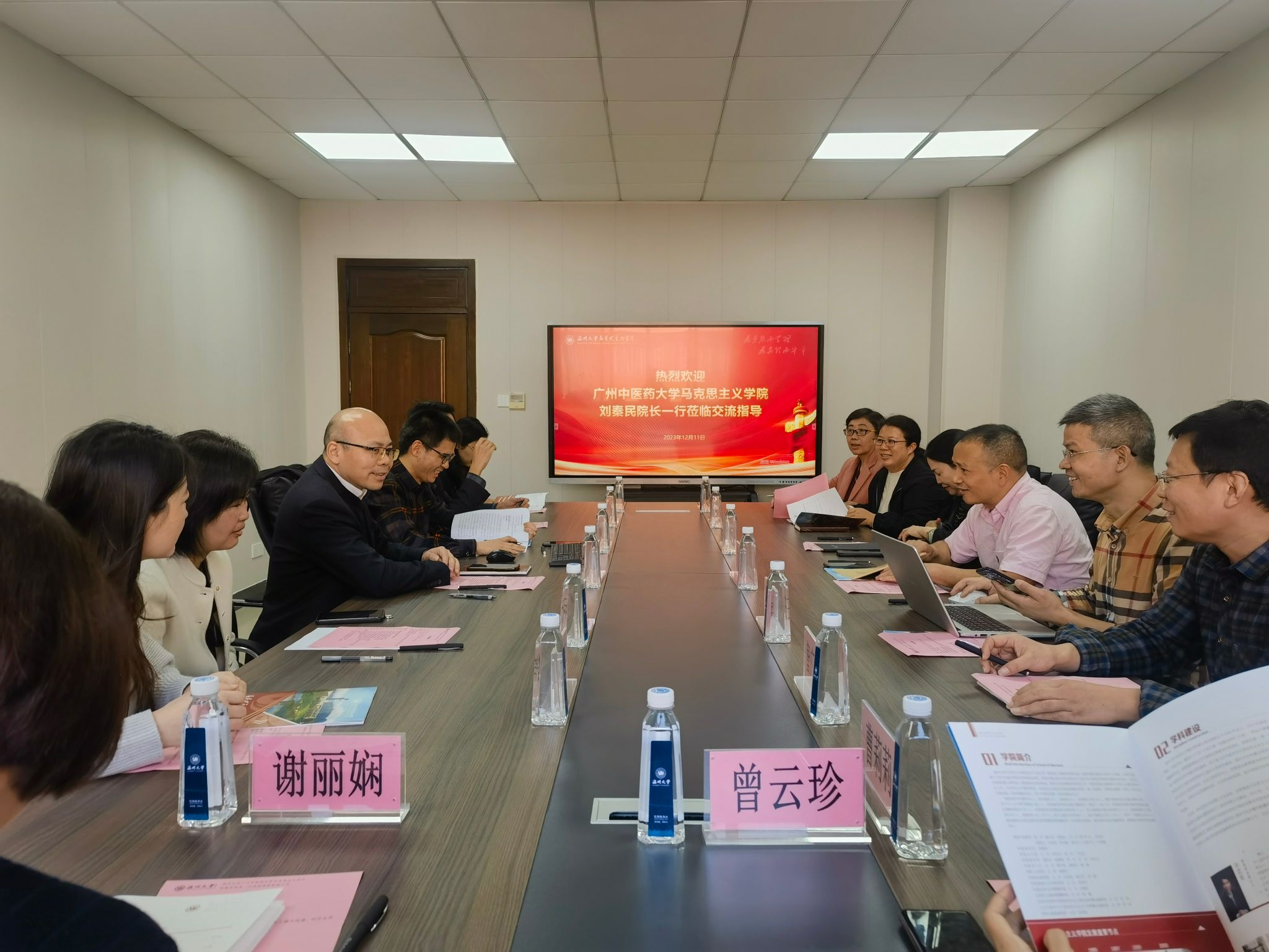 12月11日,广州中医药大学久久热 院长刘秦民教授一行11位专家学者来访久久热 ,就思政课程建设经验、思政课程与课程思政协同育人模式构建以及研究生思政课建设经验进行座谈交流。交流会由副院长吴志敏主持,卓高生院长出席会议。纲要教研室主任刘春元、原理教研室主任骆徽参加会议。