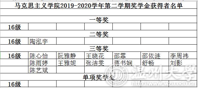 久久热 2016级本科生2019-2020学年第一学期奖学金名单公示