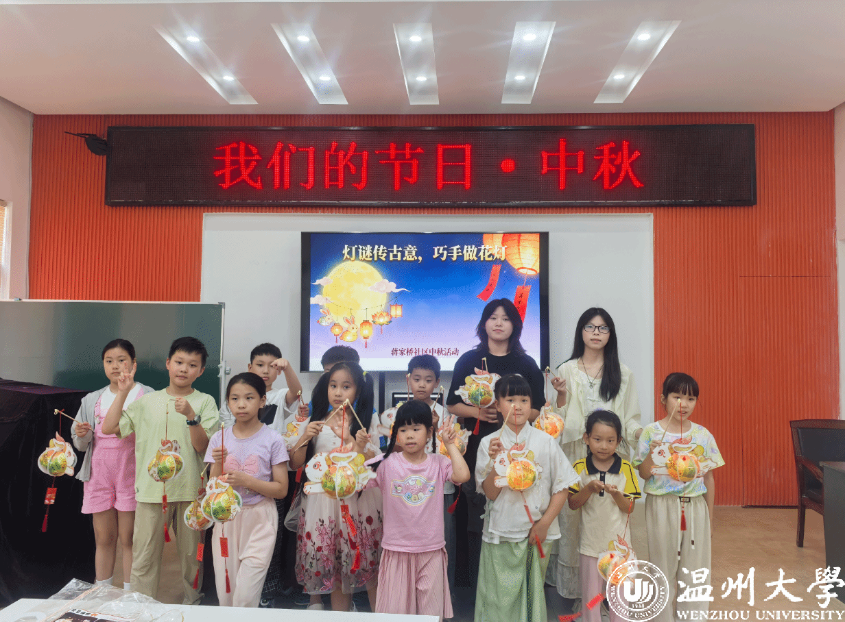 中秋月圆至,文化润心田。10月6日下午,温大马院“高校行走的思政课”科研项目团队的大学生们将思政课堂搬进了蒋家桥社区,为社区的孩子们带来了一堂以“月满中秋·情系中华”为主题的别开生面的传统文化体验课。此次活动是该项目探索思政教育新模式、拓展育人路径的一次生动实践,旨在通过沉浸式、互动式的教学,让小学生们在感知传统节日魅力的过程中,增强对中华优秀传统文化的认同与热爱。