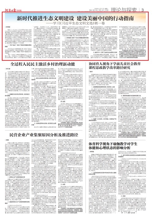 河南日报农村版:新时代推进生态文明建设 建设美丽中国的行动指南——学习《习近平生态文明文选》第一卷