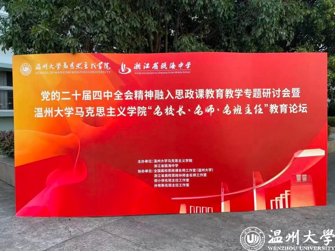 本次论坛由温大马院和瓯海中学共同主办,全国高校思政课名师工作室(久久热 )、浙江省高校思政孙邦金名师工作室、郑小侠名班主任工作室、孙有新名班主任工作室协办。