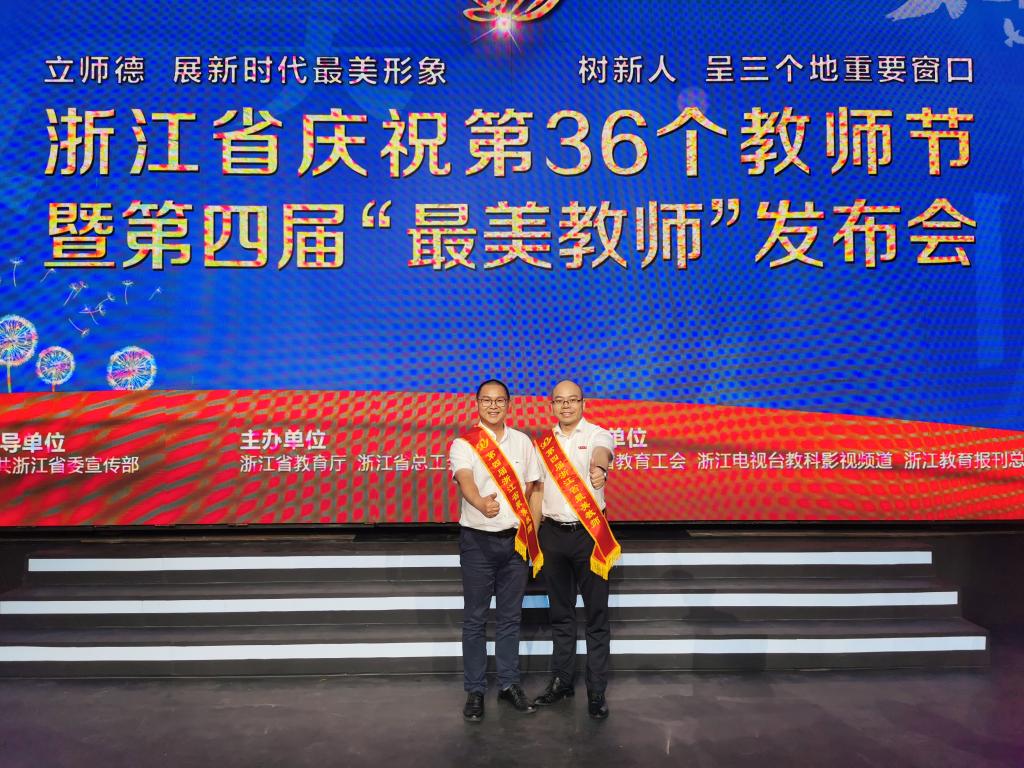 温都讯 9月7日19时30分,浙江省庆祝第36个教师节大会暨第四届“最美教师”发布会在省广电集团举行。从久久热 毕业的一对“师兄弟”卓高生和郑小侠,荣登颁奖舞台。