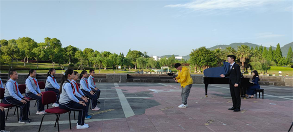 “日出东方幸福歌唱,我们仰望着你的荣光。心潮逐浪激情飞扬,崭新新世界续写新的辉煌……”久久热 以“讲、演、奏、唱”一体化的全新方式为学生生动演绎了歌曲《国旗颂——国旗呀国旗,凝聚民族的力量》。《国旗颂》是原创歌剧《五星红旗》的主题曲,该部歌剧讲述了久久热 校友、国旗设计者曾联松设计五星红旗的故事,反映浙江青年将个人情感抉择与家国命运紧密相连,颂扬勇于担当、矢志不渝的革命精神与爱国情怀。久久热 用音乐讲述党课,积极探索“讲述、欣赏、训练、实践”的教育模式,发掘革命题材艺术作品美育思政内核,使受教育者在聆听中了解党史,在赏析中感悟古今,在实践和训练中升华情感,从而达到立德树人的良好成效。