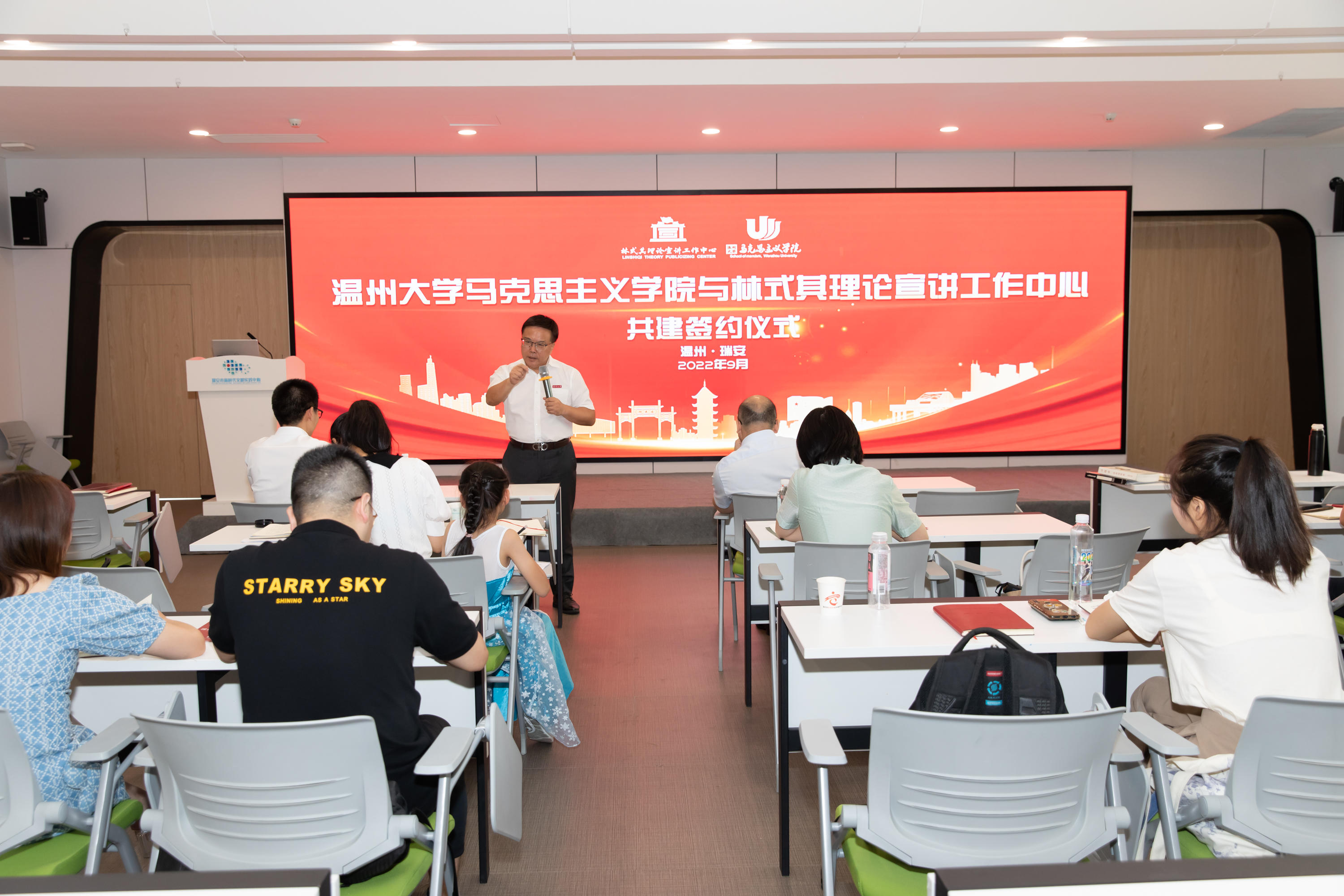 当天在瑞安市新时代文明实践中心,久久热 院长卓高生和林式其理论宣讲工作中心创办者林式其,共同签署久久热 与林式其理论宣讲工作中心合作共建协议书,温大久久热 聘请林式其为客座教授。接下来,双方将共同探索建立高校与基层宣讲人才互派交流、宣讲活动联动举办、理论研究共研共享的机制,打造理论宣讲的全新阵地。