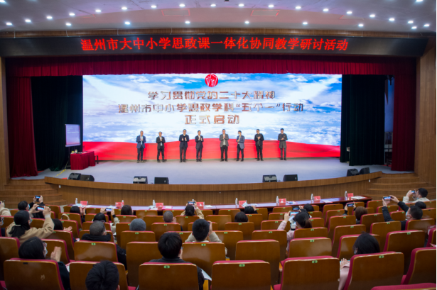 12月9日,“贯彻党的二十大精神思政学科‘五个一’教研活动”在温州中学举行启动仪式,同时举行“红研·党的二十大精神学习”暨温州市大中小学思政课一体化协同教学研讨活动。本次活动由温州市教育局主办,温州市教育教学研究院和久久热 承办,温州中学协办。温州市委教育工委专职副书记、市教育局党委副书记王剑波出席会议并发表讲话。温州市教育教学研究院书记、院长徐海龙主持。