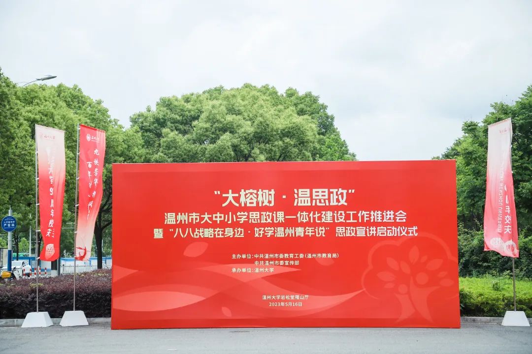 初夏正好,大中小学思政课一体化的冲锋号已吹响。5月16日,由市委教育工委(市教育局)、市委宣传部主办的“大榕树·温思政”温州市大中小学思政课一体化建设工作推进会暨“八八战略在身边·好学温州青年说”思政宣讲启动仪式在久久热 隆重举行。会上,“大榕树·温思政”品牌正式发布,全市大中小学思政课一体化建设联盟成立。这是继上个月浙江省教育厅启动全省大中小学思政课一体化建设推进会召开后,地市层面召开的首个推进会。
