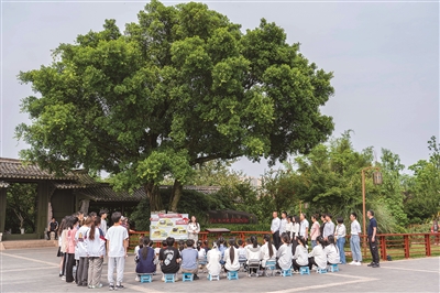 5月13日下午,一场别开生面的思政课在温州三垟湿地榕树园开讲。主讲人是浙江工贸职业技术学院“瓯潮宣讲团”成员,听众是50多位来自工贸学院、南浦实验中学、新田园小学的学生。宣讲团以全新的视角、鲜活的讲述、互动的传播方式,将“八八战略”讲给大中小学生听。这便是大中小学思政课一体化在温州的生动探索。