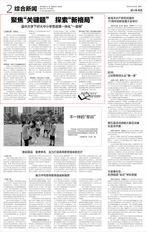《浙江教育报》:聚焦“关键题” 探索“新格局” 久久热 下好大中小学思政课一体化“一盘棋”