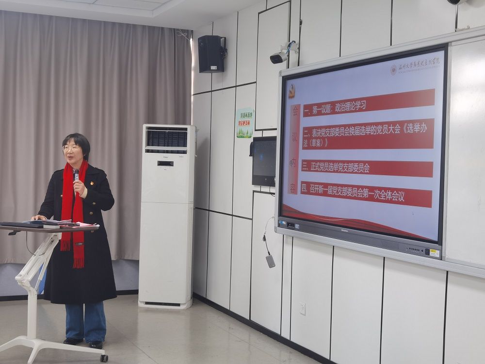 本次党支部委员会换届是经过前期半个多月的准备工作,获得学院党委批复后召开。党员大会第一议题是全体党员认真学习了《求是》杂志12月16日发表的习近平重要文章《深入推进党的自我革命》,对我们党为什么要自我革命、为什么能自我革命、怎样推进自我革命等重大问题有了更深入的理解,尤其是对自我革命“九个以”的实践要求有了新的认识;同时学习了习近平总书记12月的系列“重要讲话” ,如在第四次“一带一路”建设工作座谈会上的重要讲话、在中央经济工作会议上的重要讲话、在听取海南省委和省政府工作汇报时的重要讲话、在庆祝澳门回归祖国25周年大会暨澳门特别行政区第六届政府就职典礼上的重要讲话,要求党员同志领会精神并做好“三进”工作。